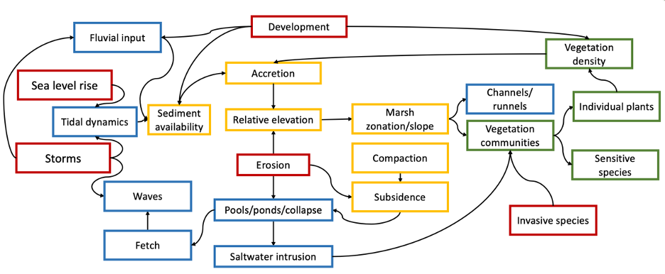 To understand conceptual model development in practice, here we provide an example of how ecosystem planners and biologists can build a conceptual model to inform restoration or management decisions. This example uses the “storytelling” framework to organize the model development process, and highlights the key steps of creating a conceptual model that can be used for saltmarsh management.