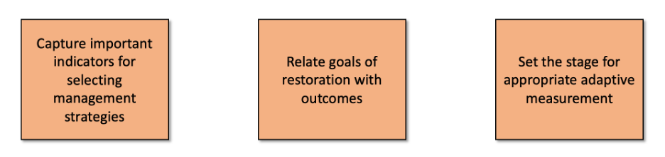 Restoration projects often entail collaboration among interdisciplinary teams with different backgrounds. So, a critical purpose of conceptual models is to develop a shared understanding, accomplished via: