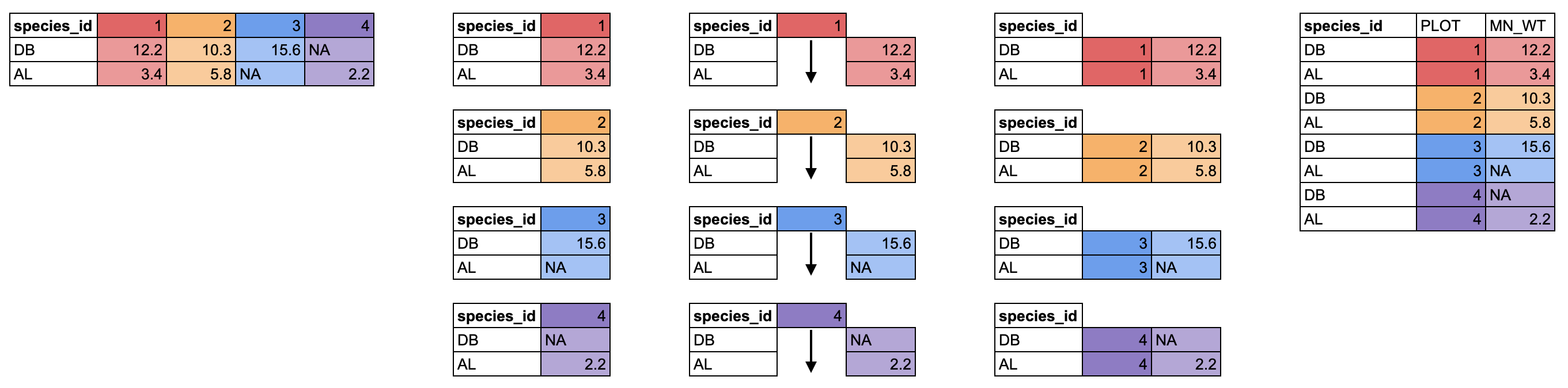 pivot_wider()andpivot_longer()are powerful for reshaping data, but you should plan out how to use them thoughtfully